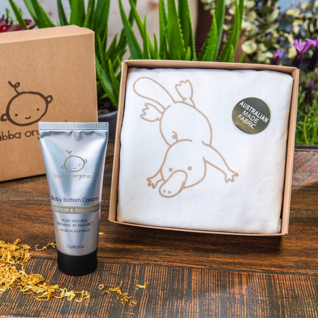 Organic Cotton Baby Wrap with Lavender & Chamomile Baby Bottom Cream.