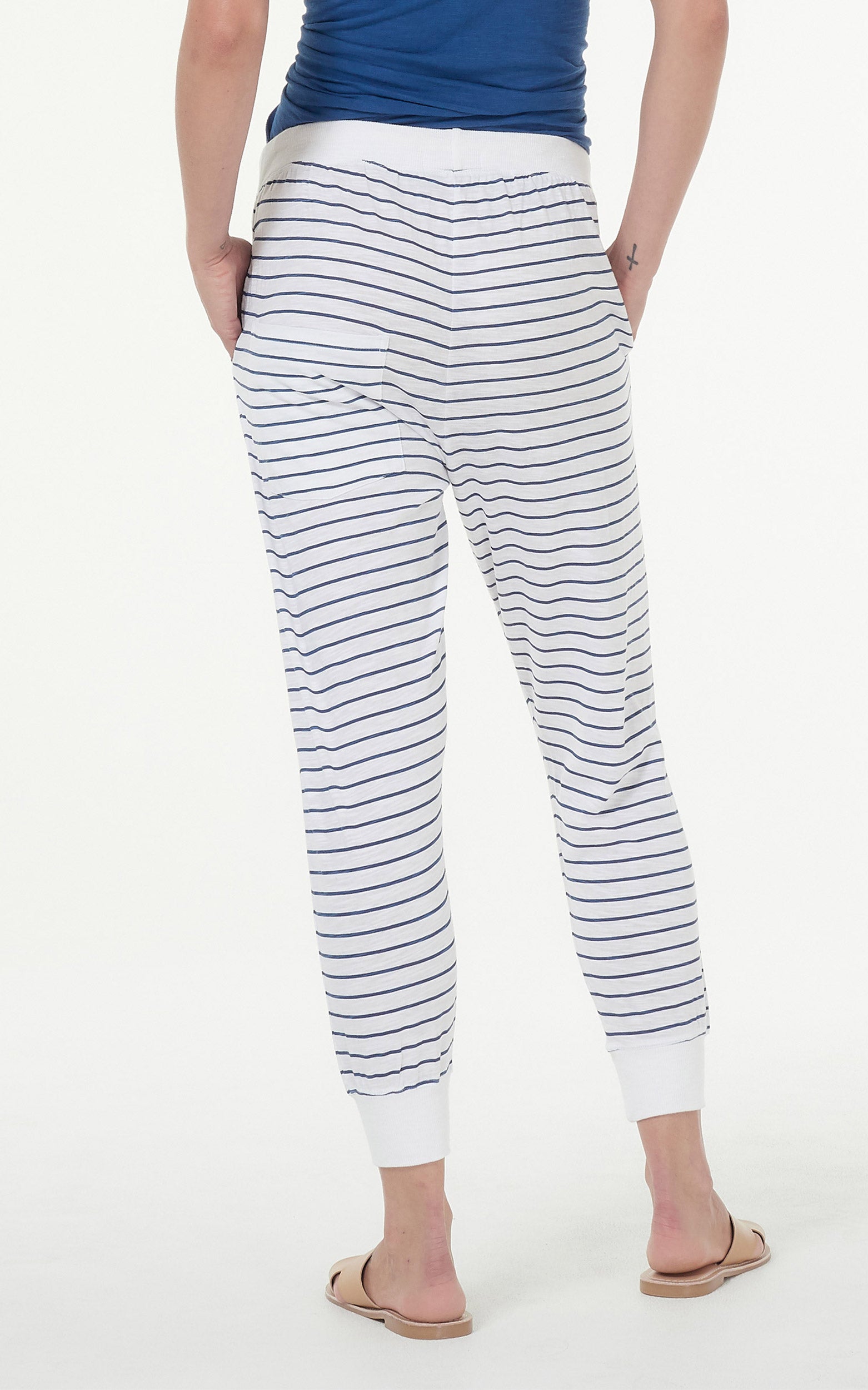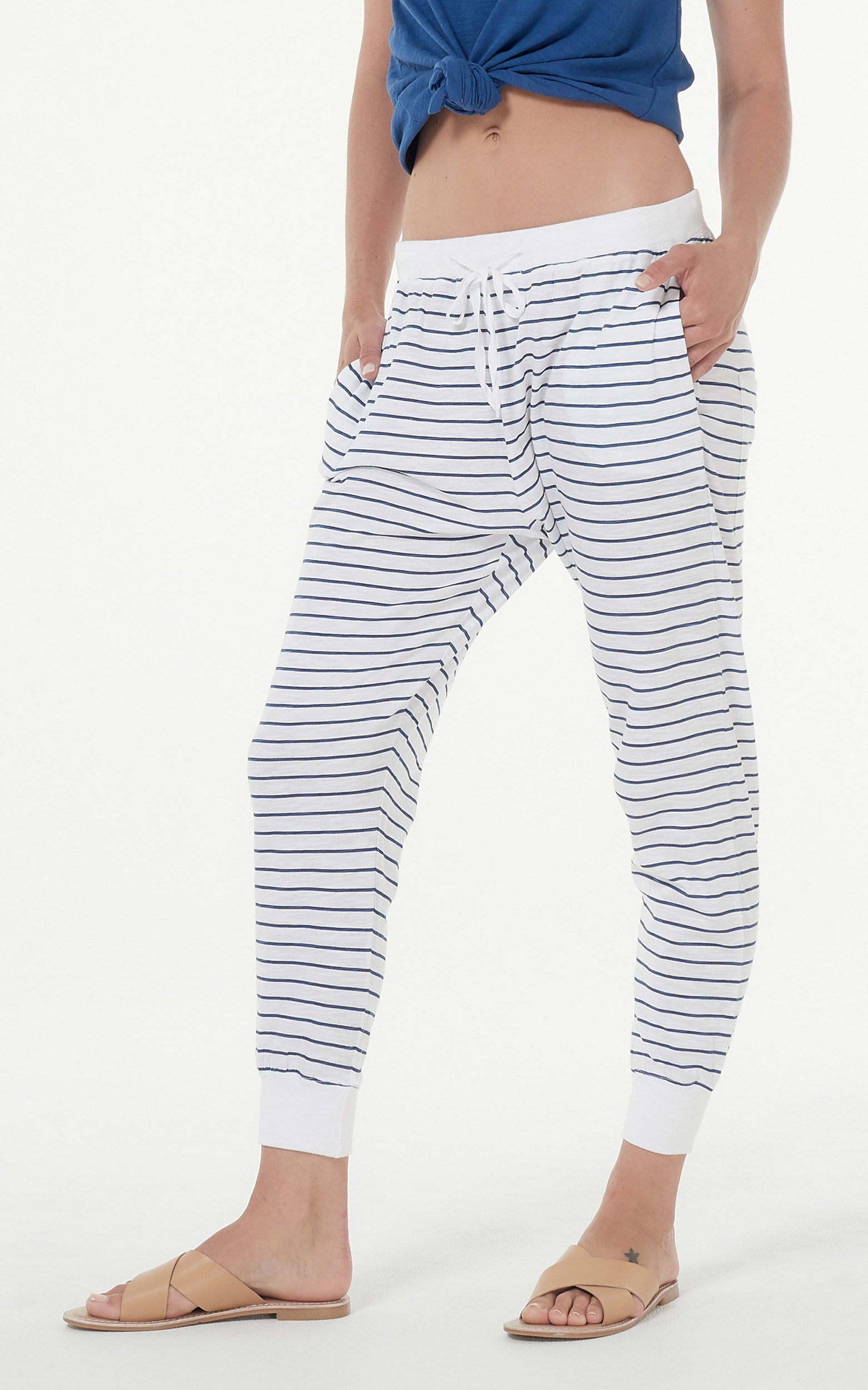 Clé Organic Basics || Camilla Lounge Pants - White/Indigo Stripe