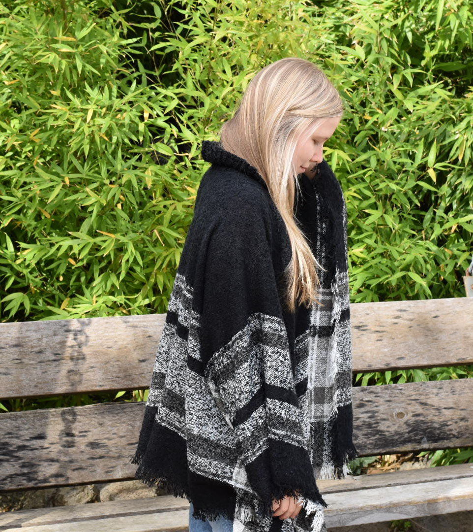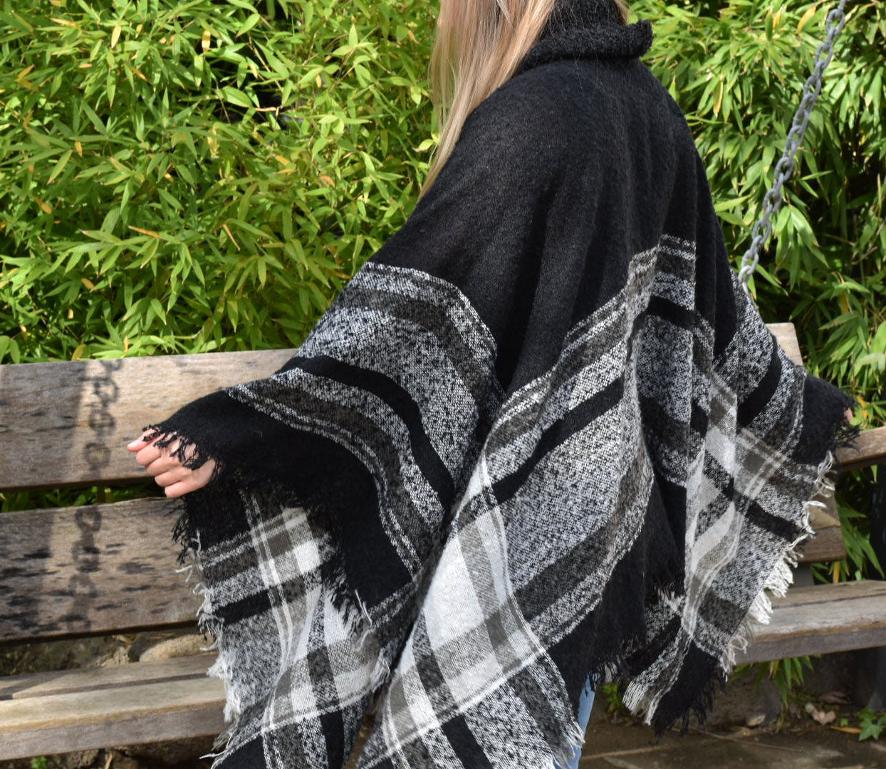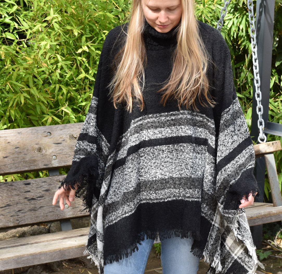 Effortlessly chic and stylish with the cozy black and grey turtle neck. Leaving you with a generous cut, that is one size fits all.