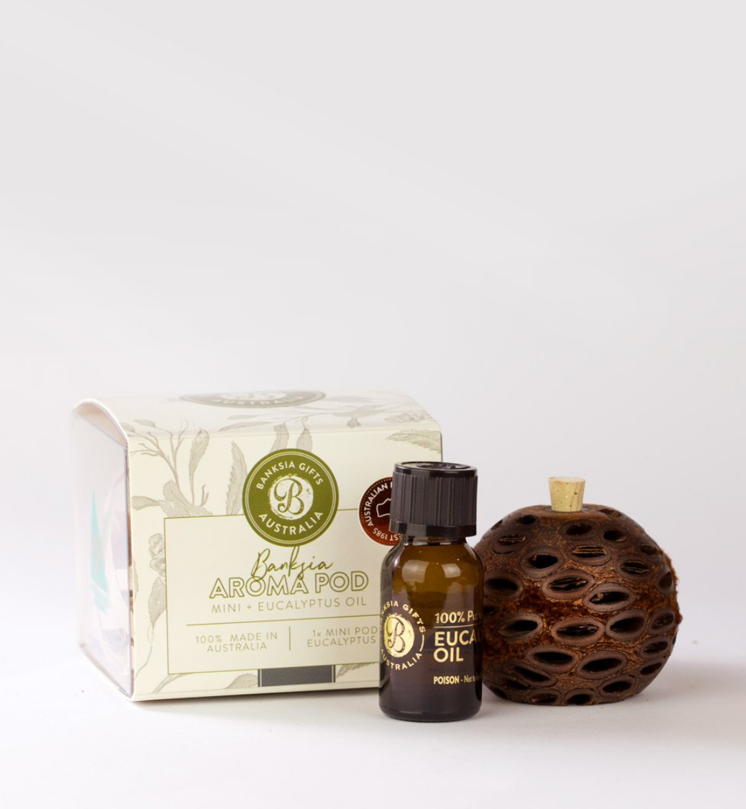 Containing a Mini Banksia Aroma Pod and a bottle of our Eucalyptus Oil.