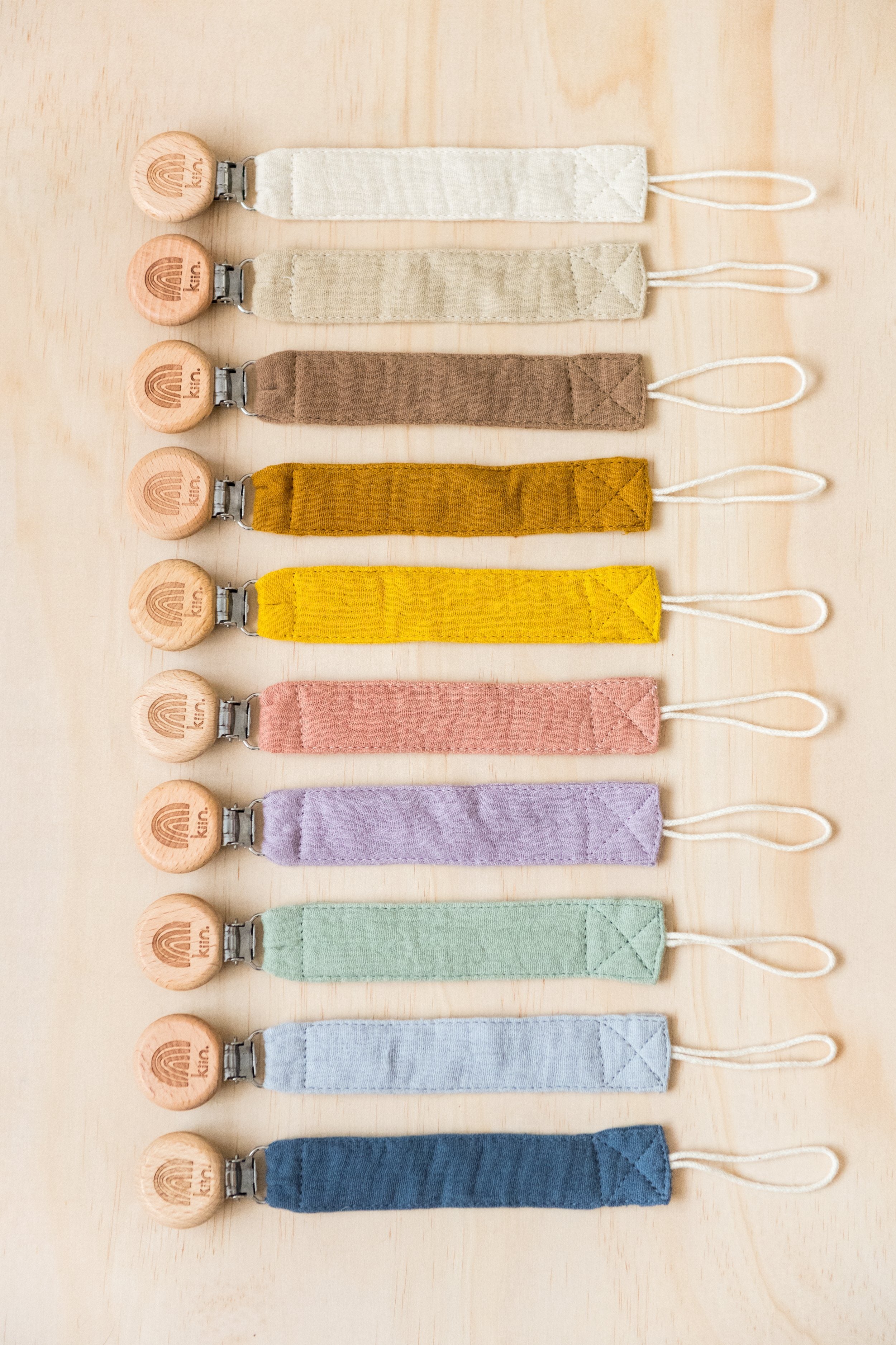 Keep your little one's dummy within reach with one of our cotton dummy clips! Dummy clips help to keep your baby’s dummy clean, ensuring that it is off the floor and doesn’t get lost. This is a great baby shower gift! With 10 colours available, it is perfect for a gender neutral baby shower or nursery.
