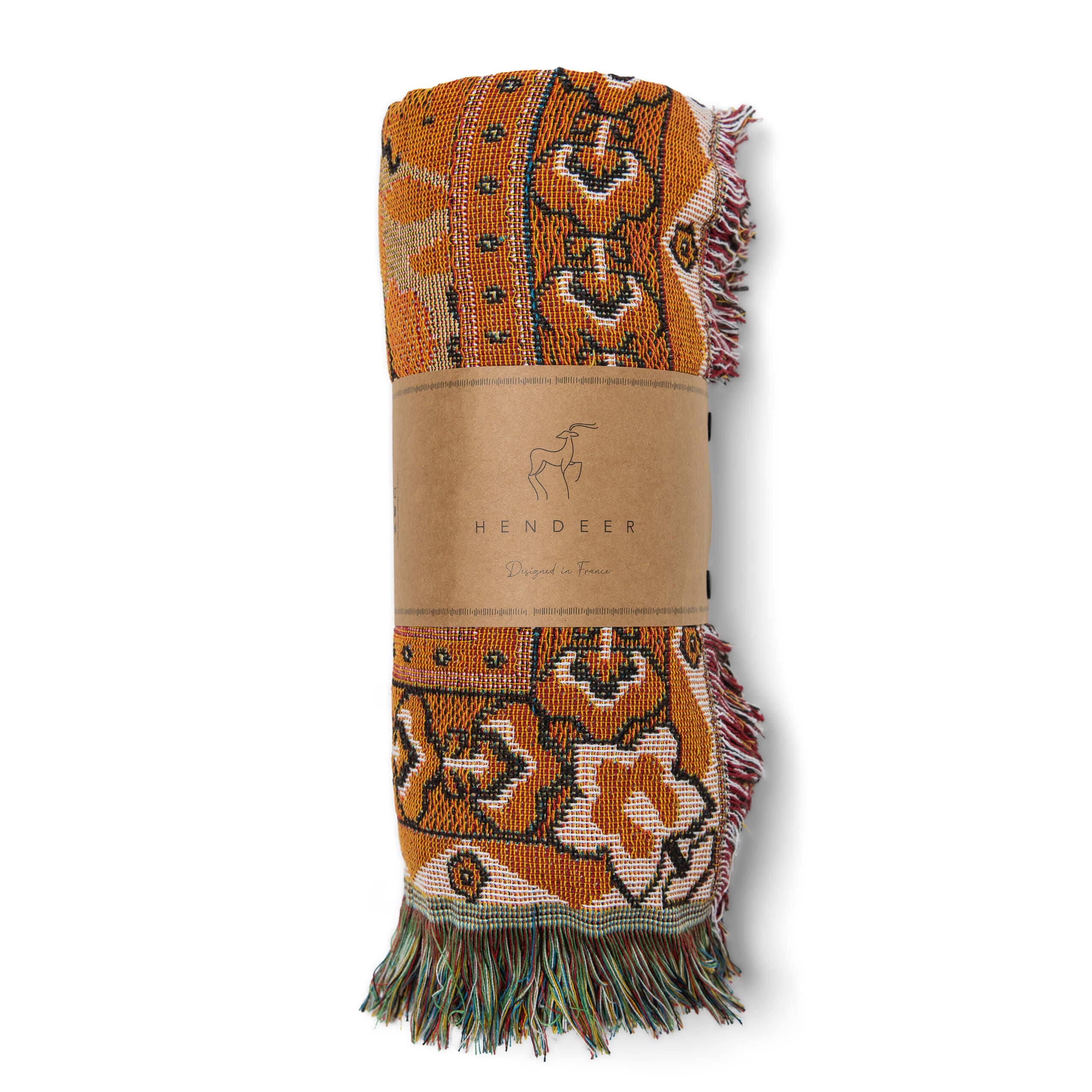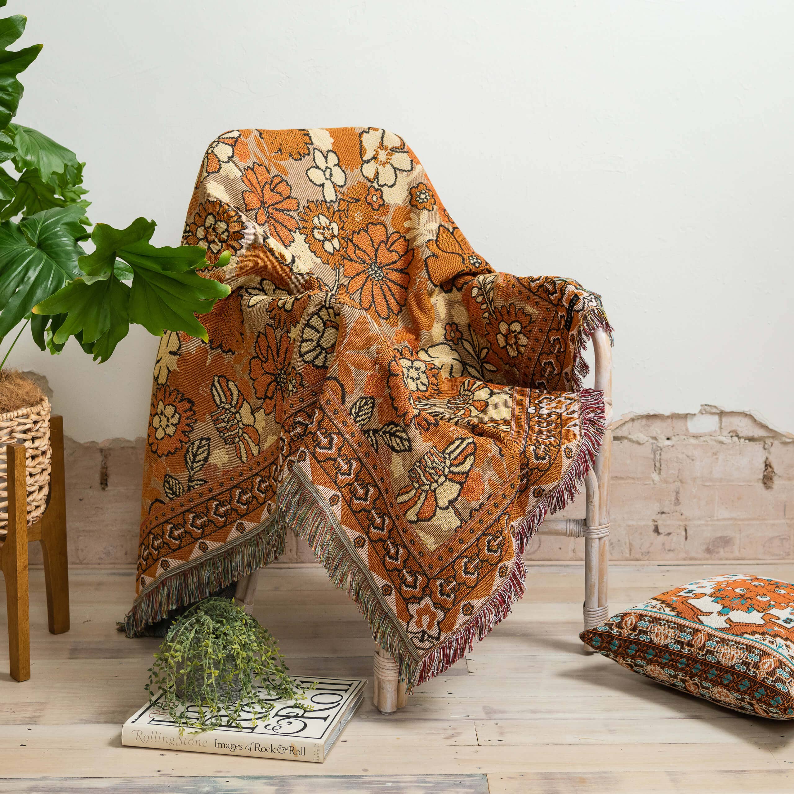 Its warm earthy tones with hints of chalky beige/lemon accents are a perfect accompaniment to any bohemian interior.