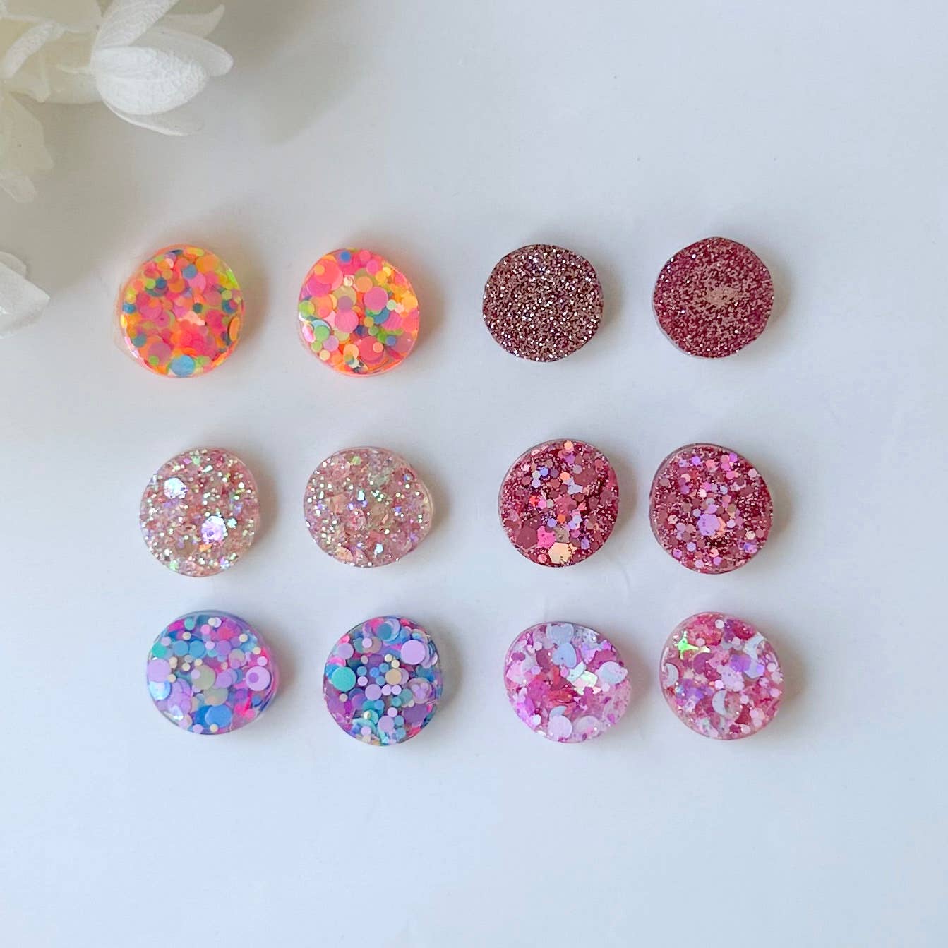 These elegant earrings feature sparkling glitter and delicate flower designs, creating a beautiful and eye-catching accessory that is sure to add a touch of glamour to any outfit.