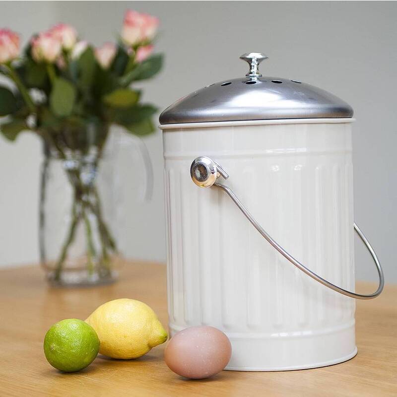 Behold the eco-friendly, nose-friendly solution in the form of this sleek and stylish compost bin. A carbon filter in the lid keep odors under control. A convenient handle allows you to carry 5 litres worth of garbage out to the compost heap where it belongs.