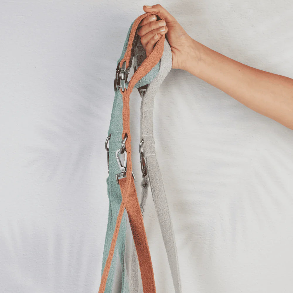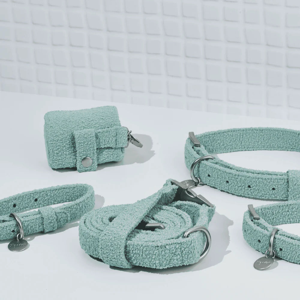 The sage coloured boucle dog leash is the ultimate walking accessory.