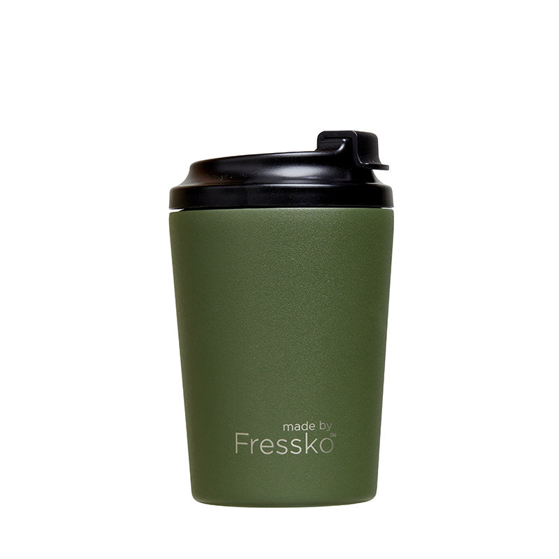 Available in 8oz and 12oz, Fressko coffee cups are vacuum sealed, scratch-resistant, have a spill-proof, screw-in, easy to clean, no fuss, lockable lid and internal barista lines.