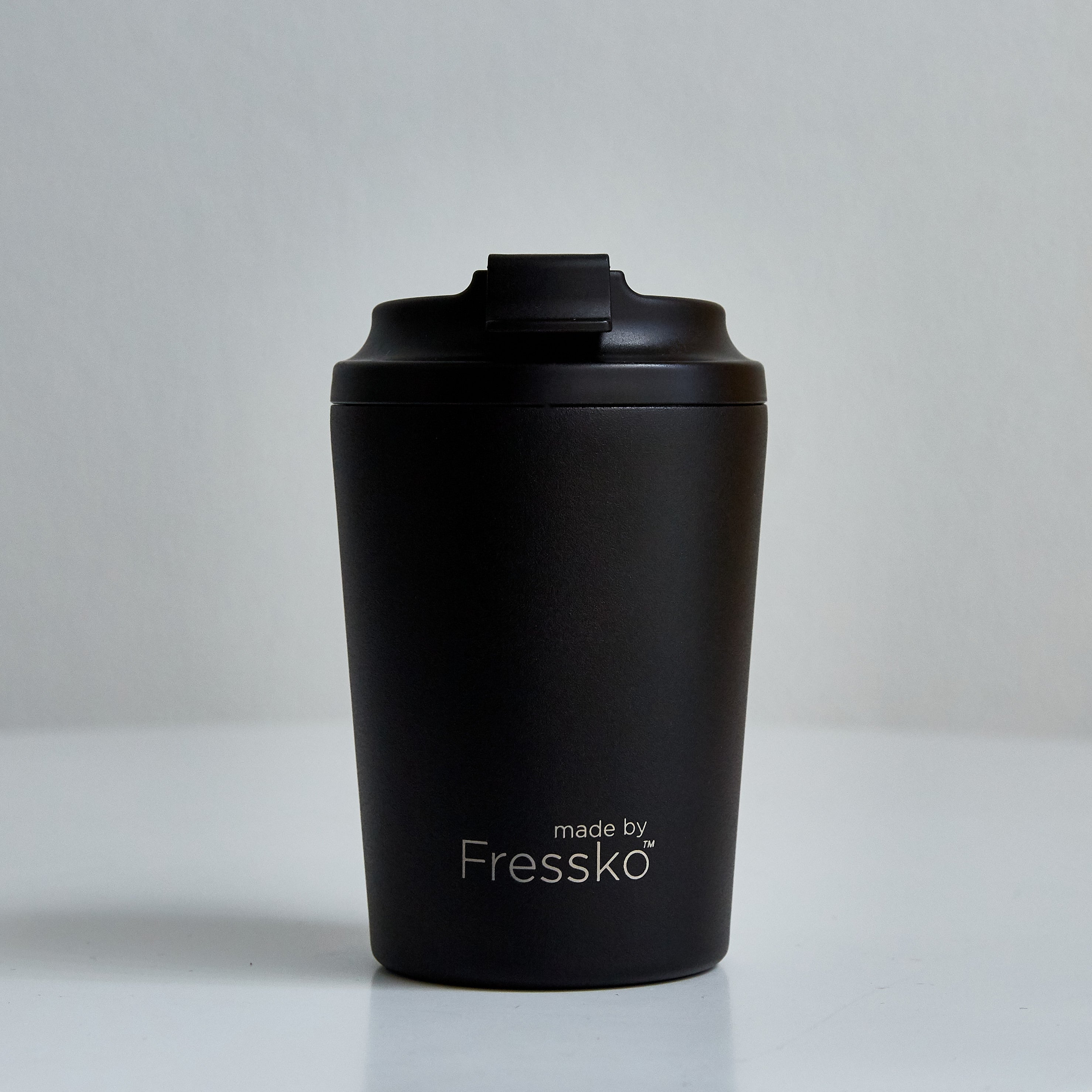 Available in 8oz and 12oz, Fressko coffee cups are vacuum sealed, scratch-resistant, have a spill-proof, screw-in, easy to clean, no fuss, lockable lid and internal barista lines.