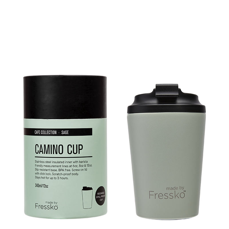 Available in 8oz and 12oz, Fressko coffee cups are vacuum sealed, scratch-resistant, have a spill-proof, screw-in, easy to clean, no fuss, lockable lid and internal barista lines.
