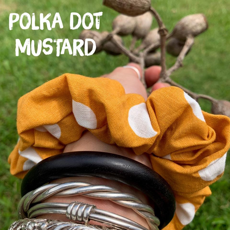 Linen Polka Dot Mustard Scrunchie
