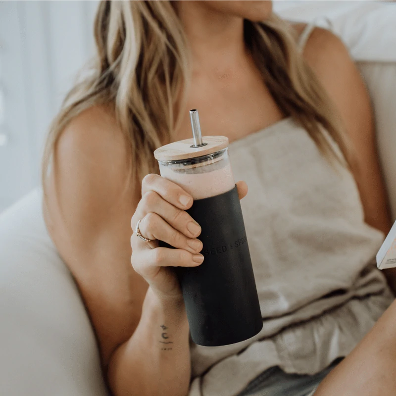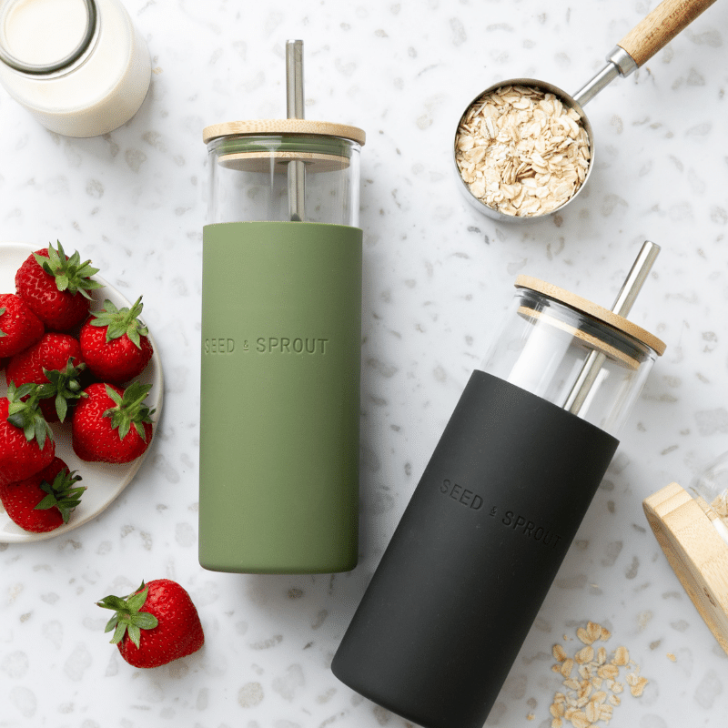 Sip On Your Smoothie Without It Costing the Planet! Seed & Sprout's Glass Smoothie Cup is the sustainable (and stylish) answer to plastic cups.