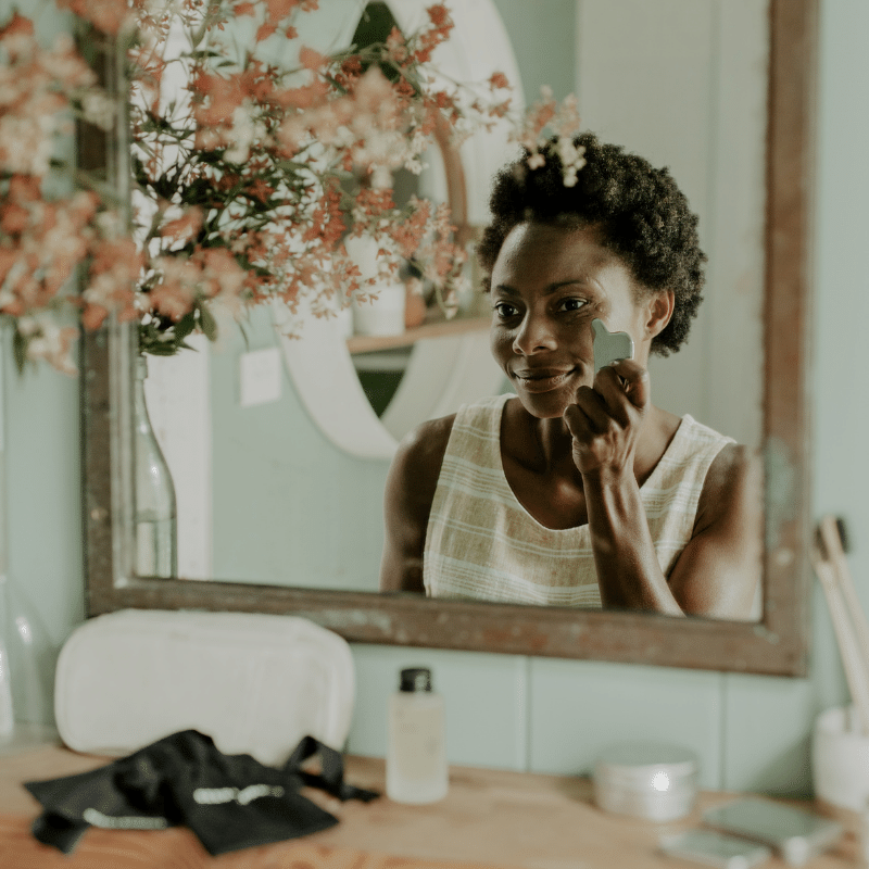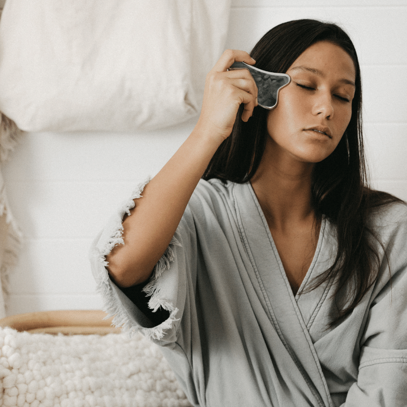Gua Sha is an ancient Chinese technique that has been used for thousands of years, and is now used globally due to its many benefits. It’s a simple scraping technique that helps with relieving muscle tension, soothing puffiness, improving circulation, and smoothing out your skin - to name a few!