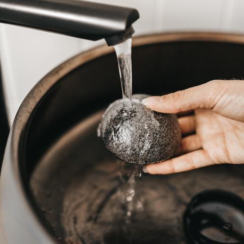 - The sponge will be hard when dry. Rinse before use and squeeze a few times until soft.
