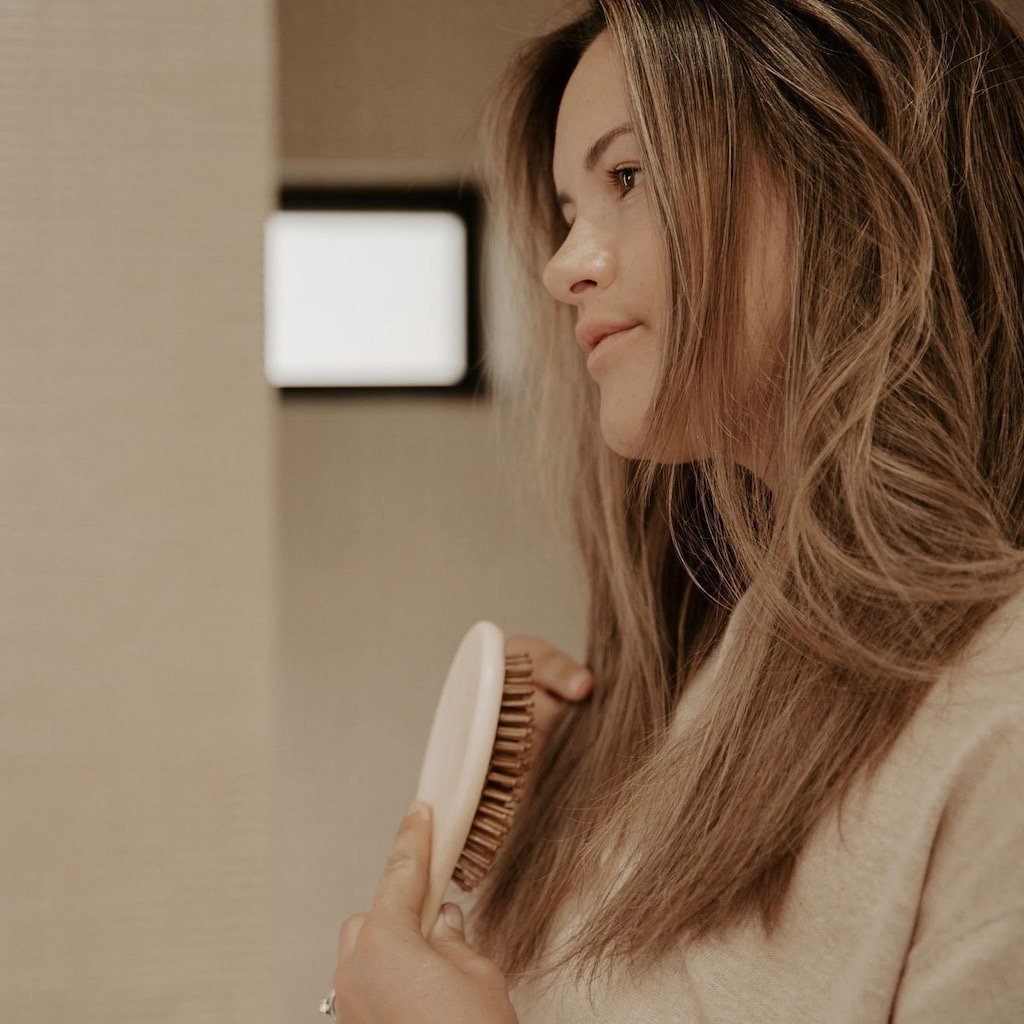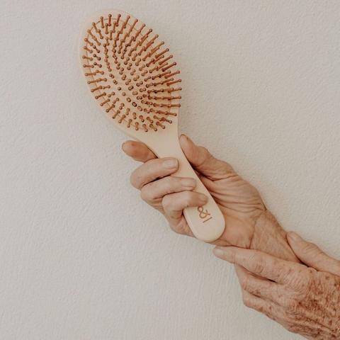 The Seed & Sprout Wooden Hair Brush offers an easy way to reduce your plastic footprint. It has a rubber mat, wooden bristles and is made from wood, clever! It also works really well.