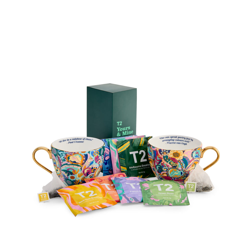 - 2 fine bone china mugs and 14 tea bags in individual sachets.