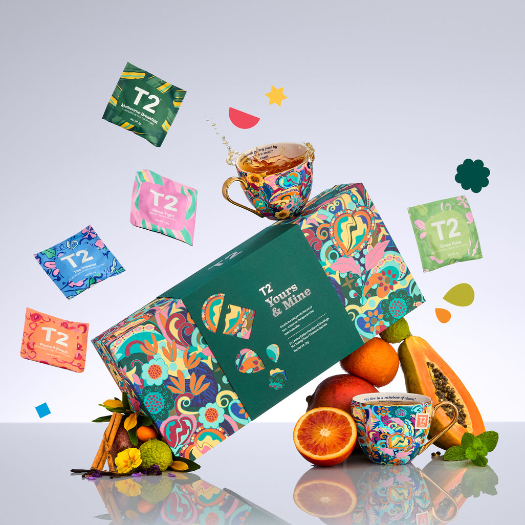 Double the delight with this set of two – a feast for the eyes and the taste buds alike. This pair of mugs accompanies 14 tea bags, with two of each delicious blend. Perfect if you want to share or just like things to match.