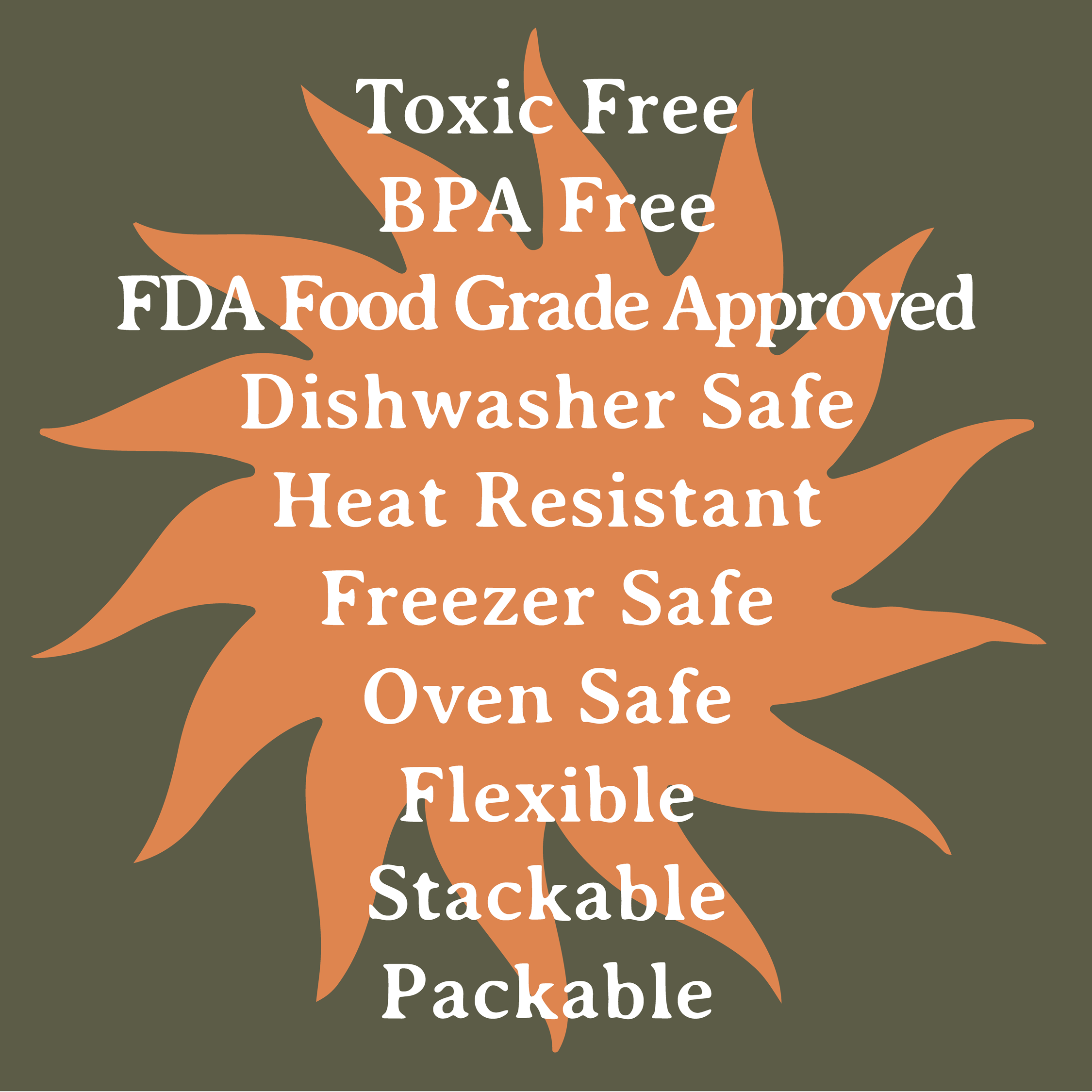 •  Durable. Made from 100% food grade silicone.