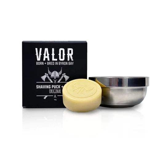 Valor Orgnics Shaving Soap Puck + Steel Bowl- Original or Woodsman