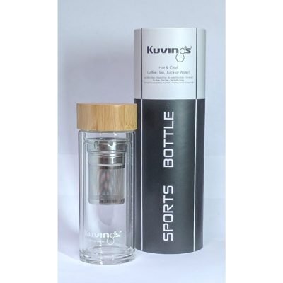 Double wall glass bottle with Stainless Steel tea infuser, Neoprene sleve & Bamboo lid.
