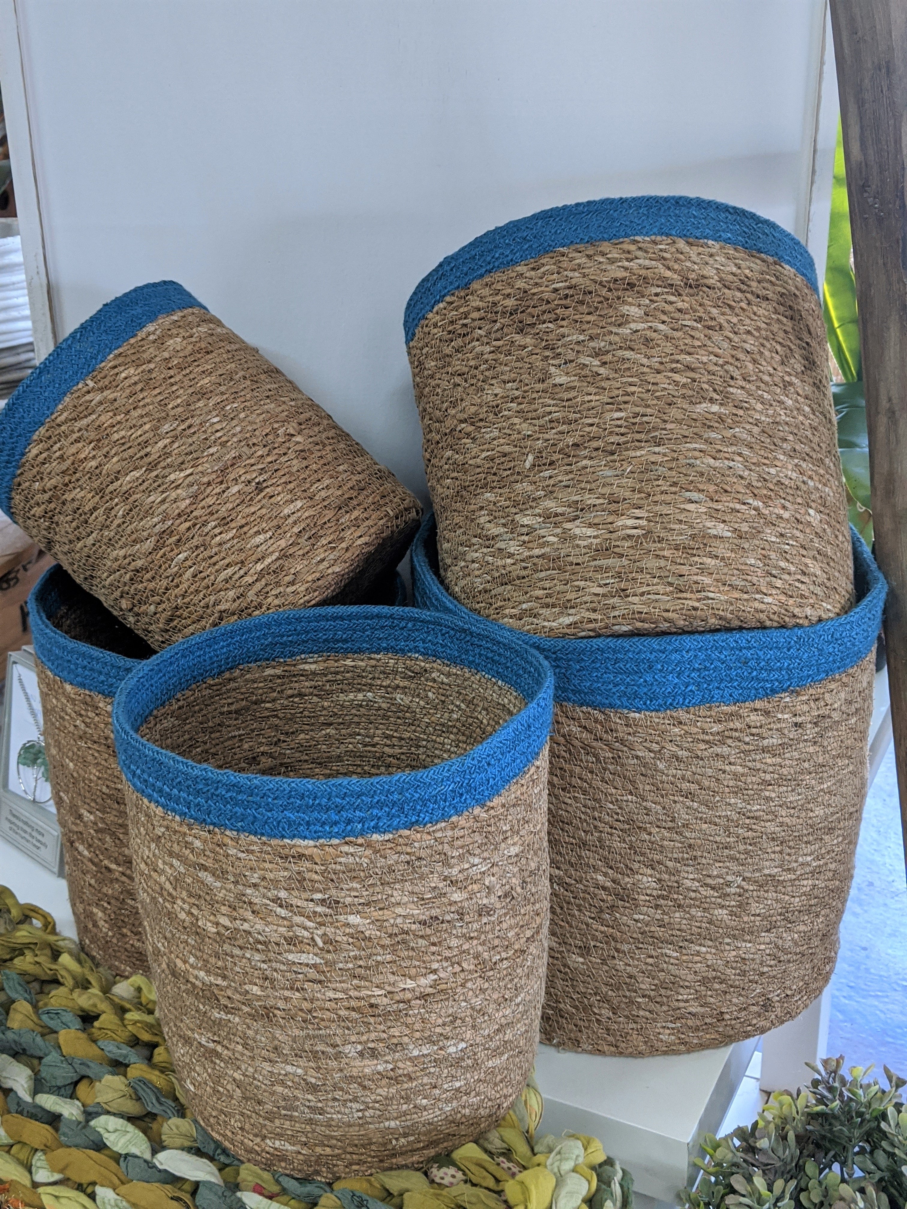 Dress up your space with our eclectic selection of handwoven eco-friendly baskets. Whether you use them as storage baskets or as planters to decorate your home, they come in a variety of sizes, colours and shapes to go with your decor. Our wicker baskets are made of environmentally sustainable jute, seagrass and recycled denim