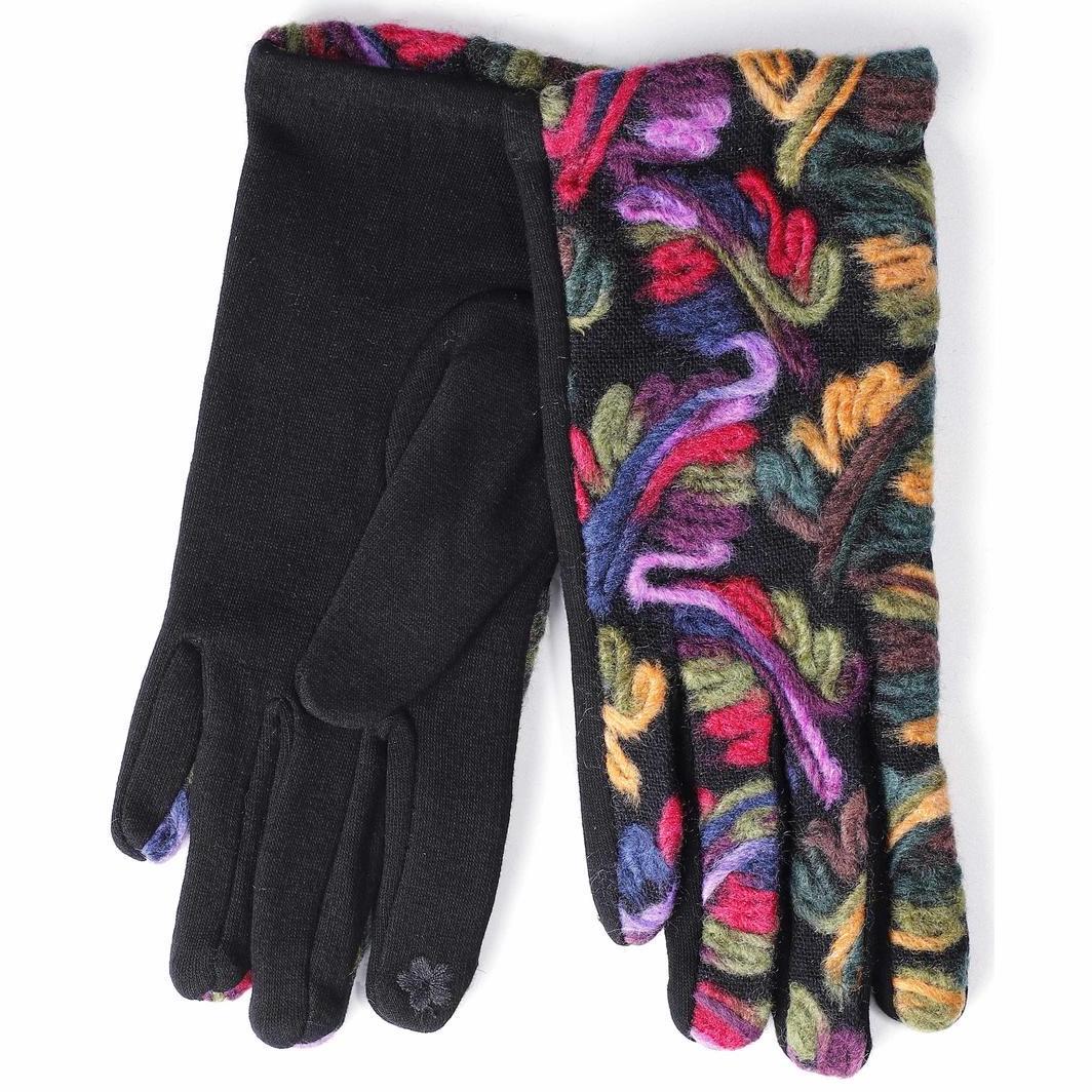 Detailed Gloves - Black With Fuchsia Embroidered Leaves