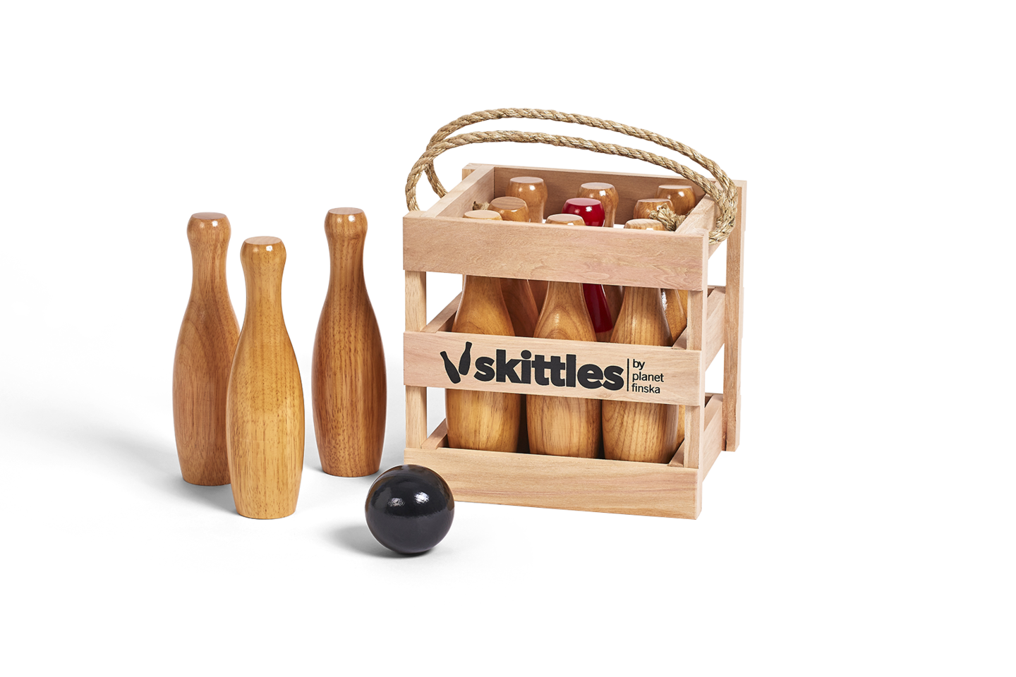 This handy crate of classic timber skittles will bring hours of fun to young and old.