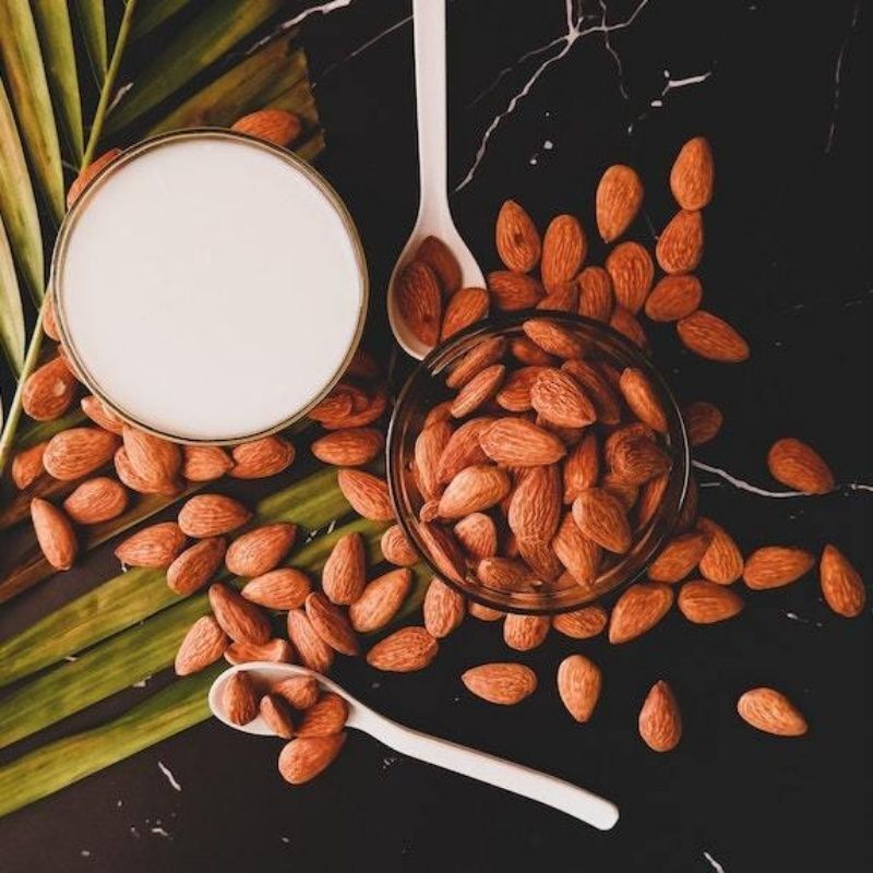 - A simple almond milk is made by soaking 1⁄4 cup of almonds in 1 cup of water with a pinch of salt for a few hours.
