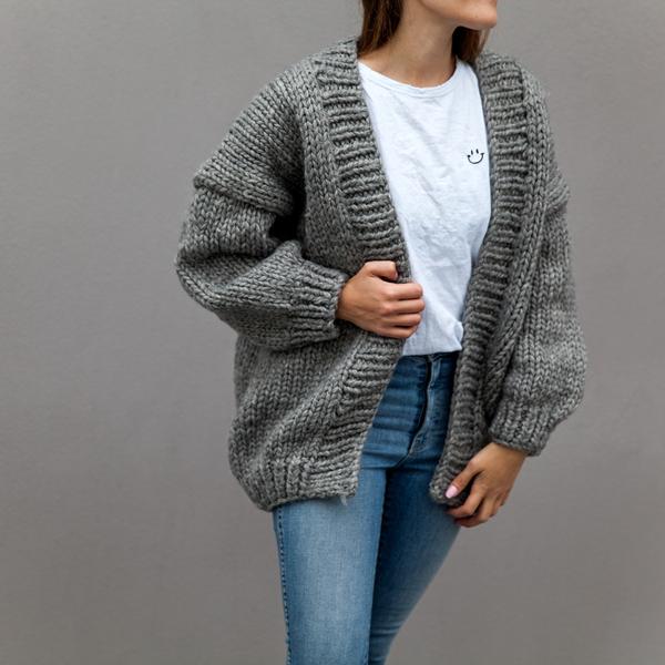 The chunky knit cardigan is a super cozy layer to wear all winter over jeans or leggings and a tee.