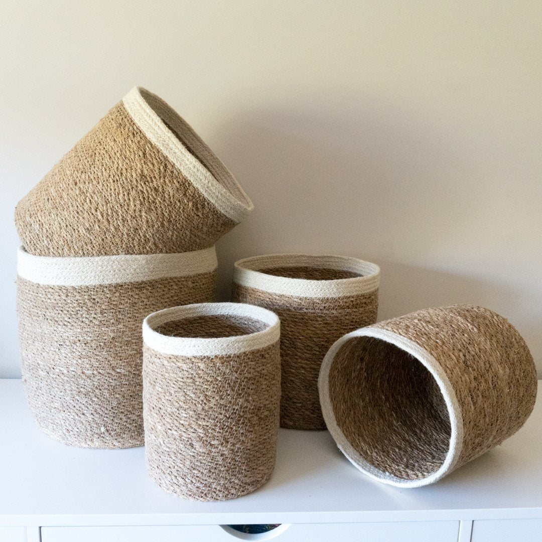 Dress up your space with our eclectic selection of handwoven eco-friendly baskets. Whether you use them as storage baskets or as planters to decorate your home, they come in a variety of sizes, colours and shapes to go with your decor. Our wicker baskets are made of environmentally sustainable jute, seagrass and recycled denim
